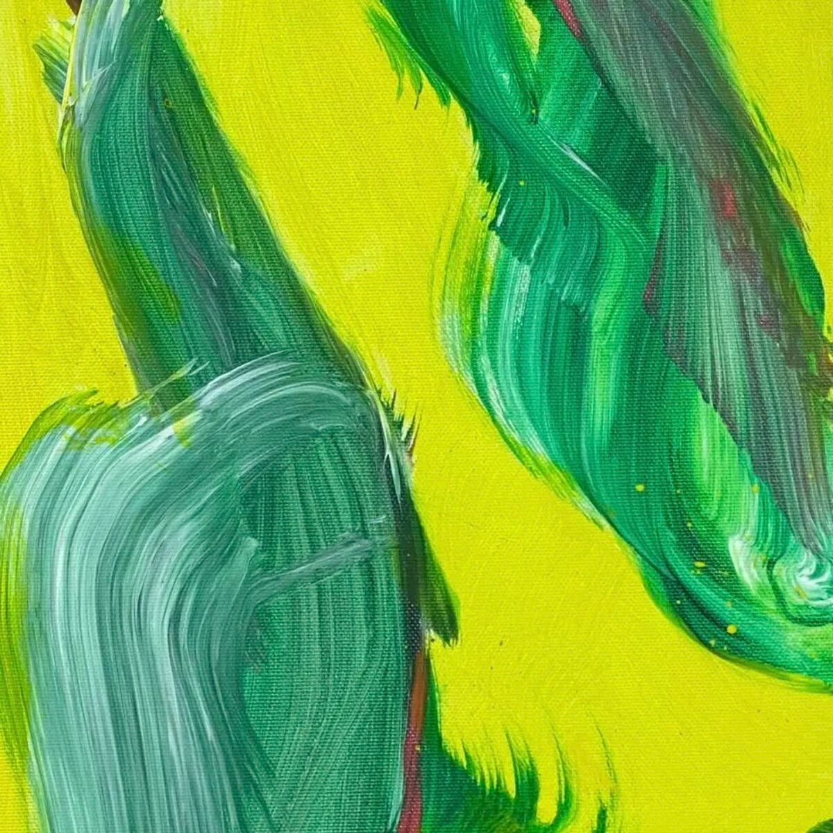この作品《元気な葉っぱ》は、2024年に沖縄県立博物館・美術館の県民ギャラリーで展示された原画です。