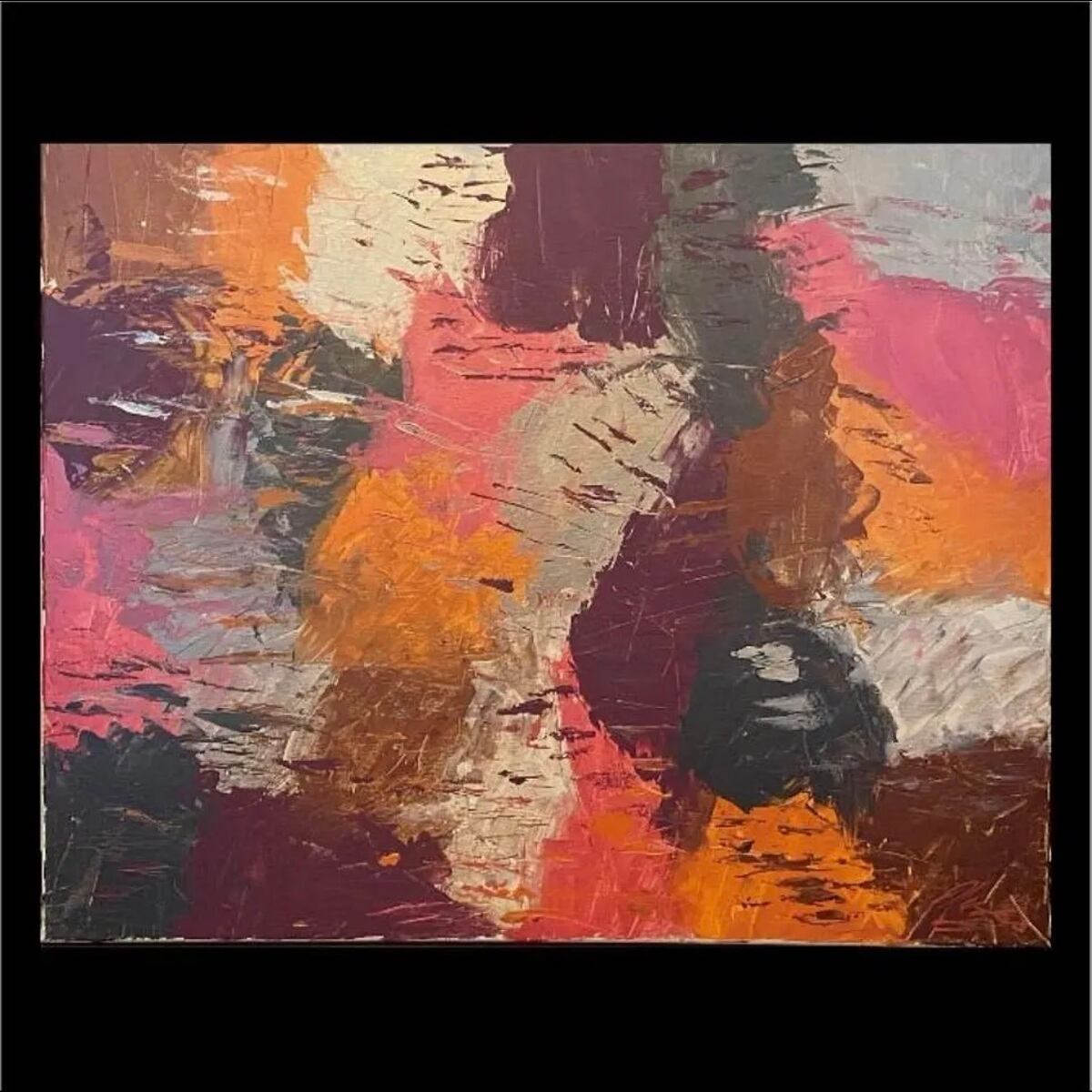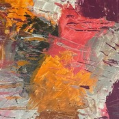 重ねられた色がぶつかり合い、削り取られた跡が残るキャンバス。