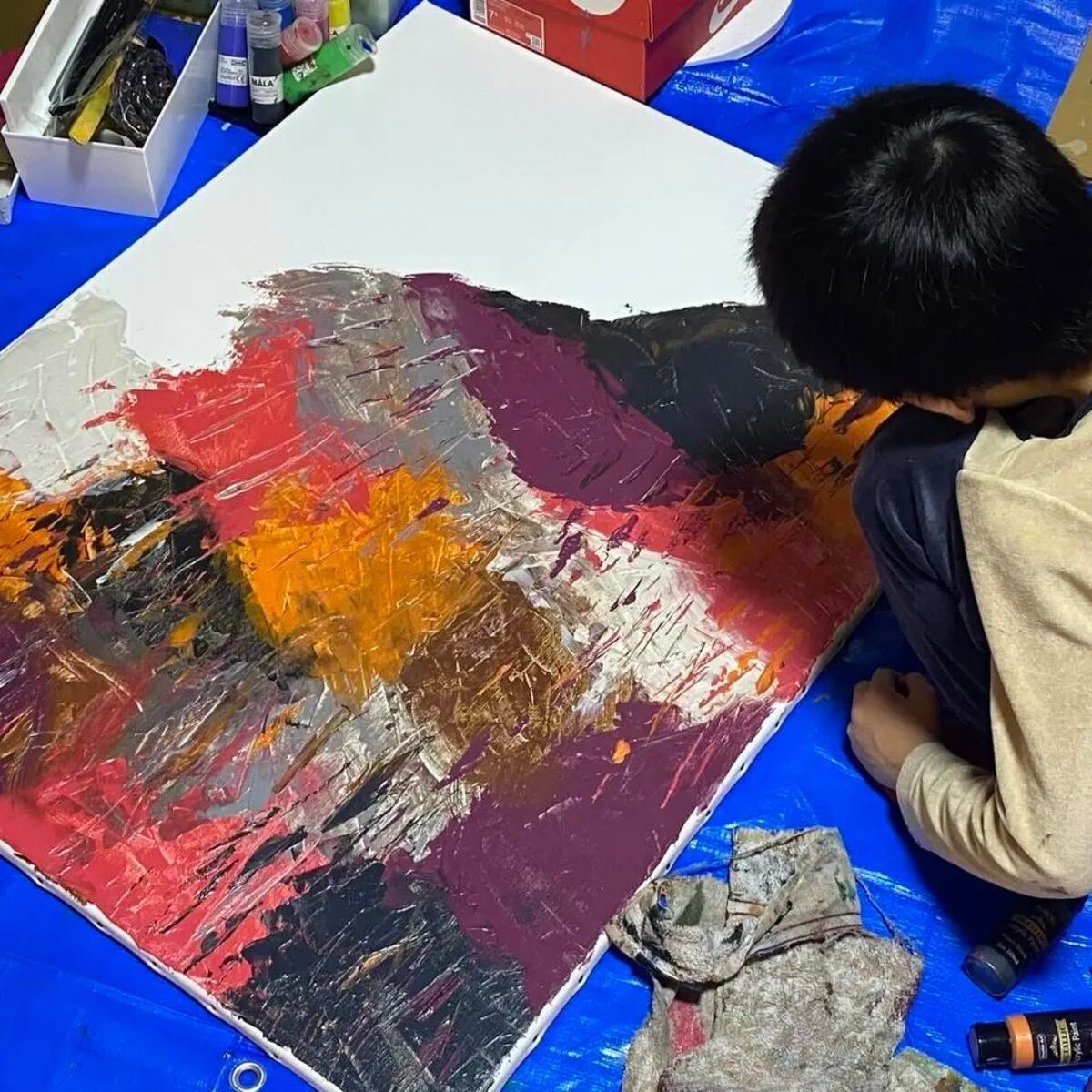 毎日のようにキャンバスに向かい、色と線で自分の世界を表現している。