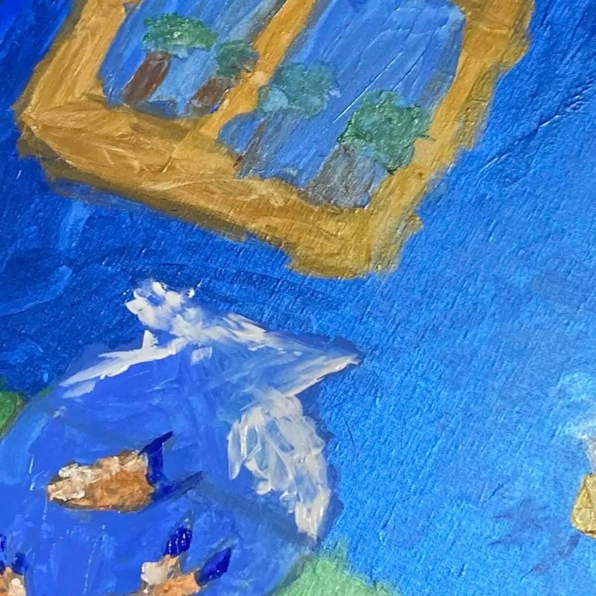モチーフの一つひとつには温度があります。金魚鉢は“いのちの揺らぎ”、窓は“世界とのつながり”、小さなお皿は“家族への想い”。