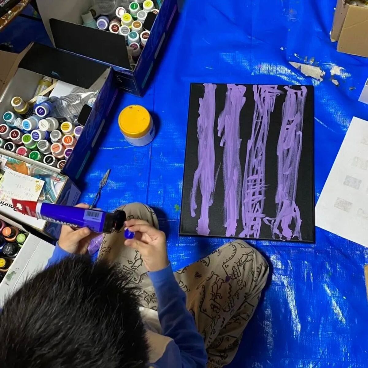 毎日のようにキャンバスに向かい、色と線で自分の世界を表現している。