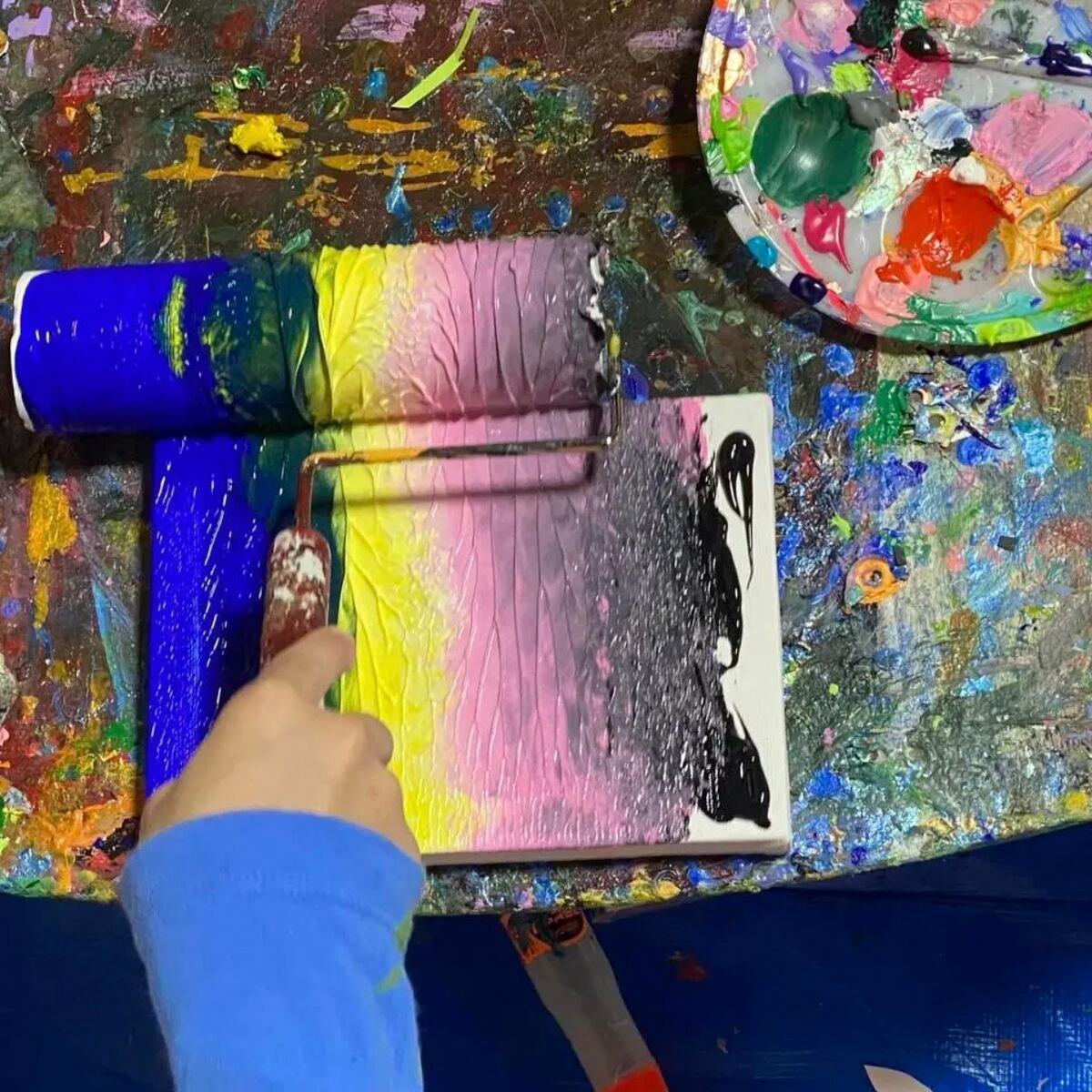 毎日のようにキャンバスに向かい、色と線で自分の世界を表現している。