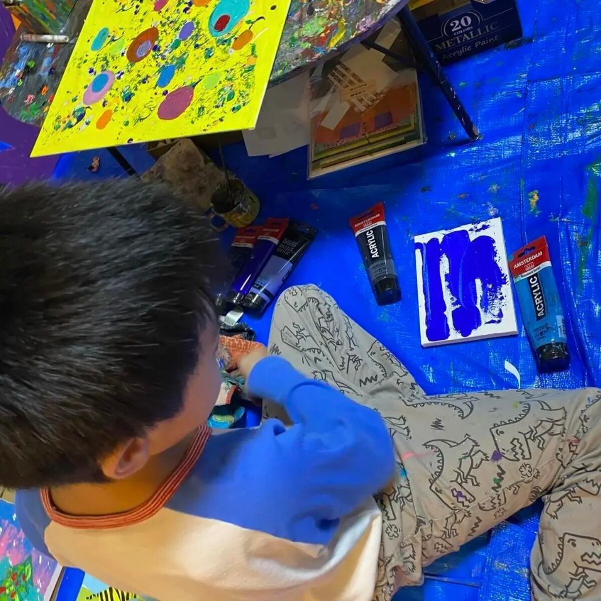 毎日のようにキャンバスに向かい、色と線で自分の世界を表現している。