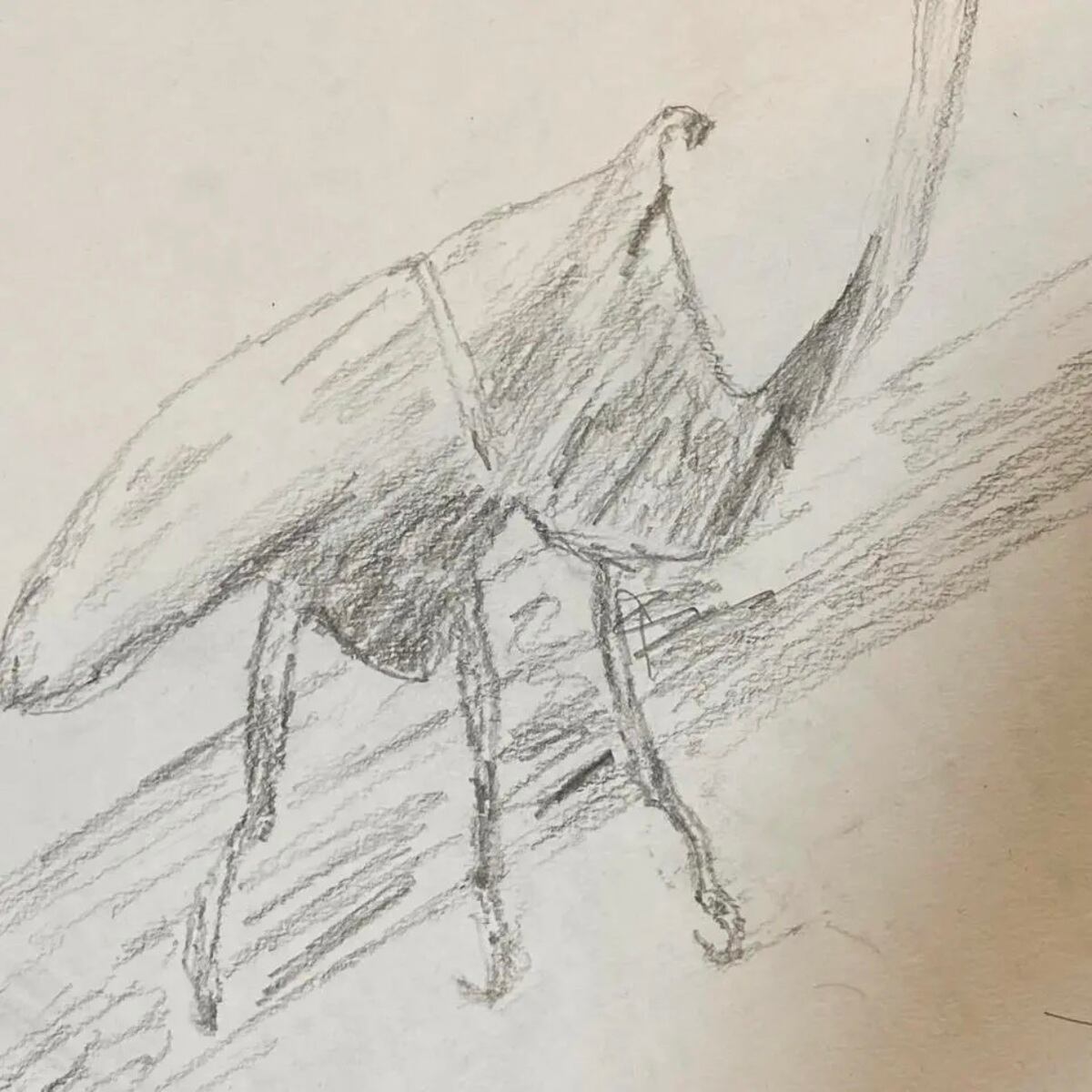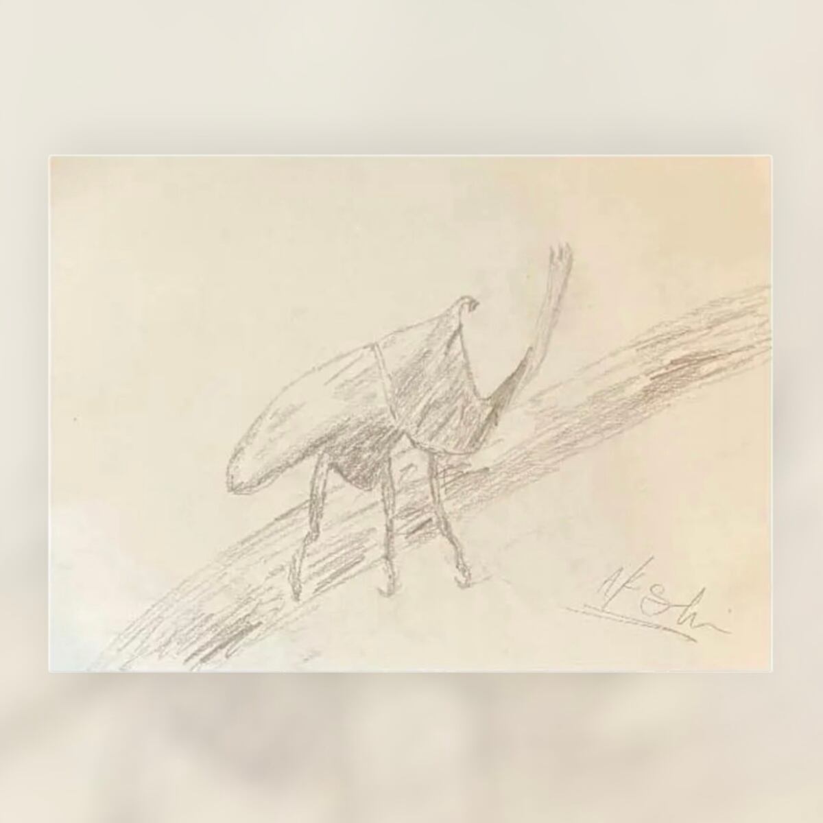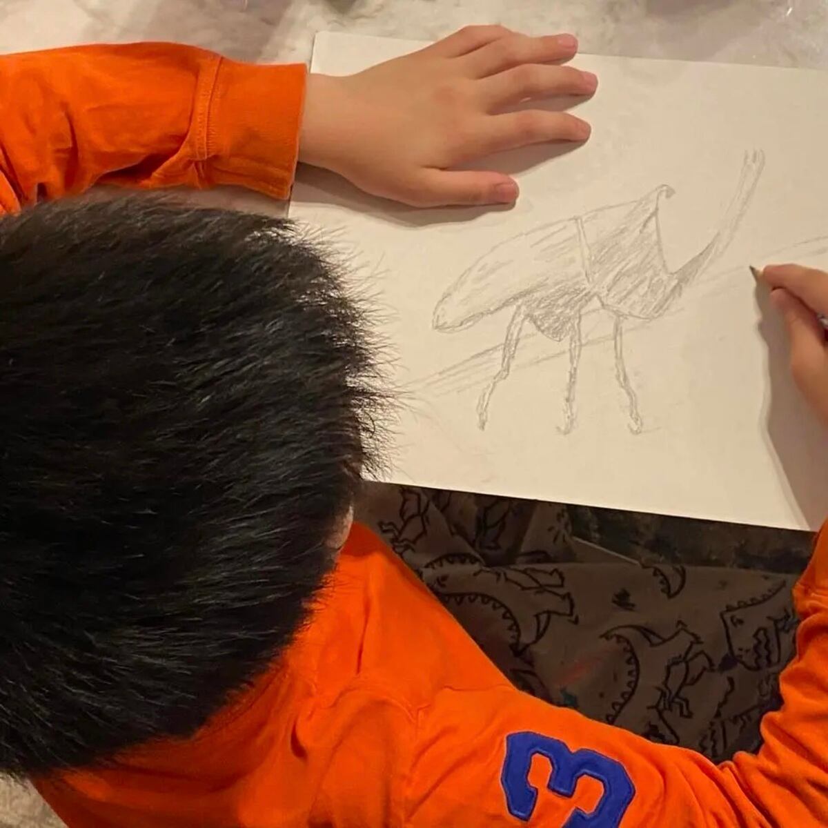 紙の上を静かに進むカブトムシの存在感は、観察力と集中力の証。