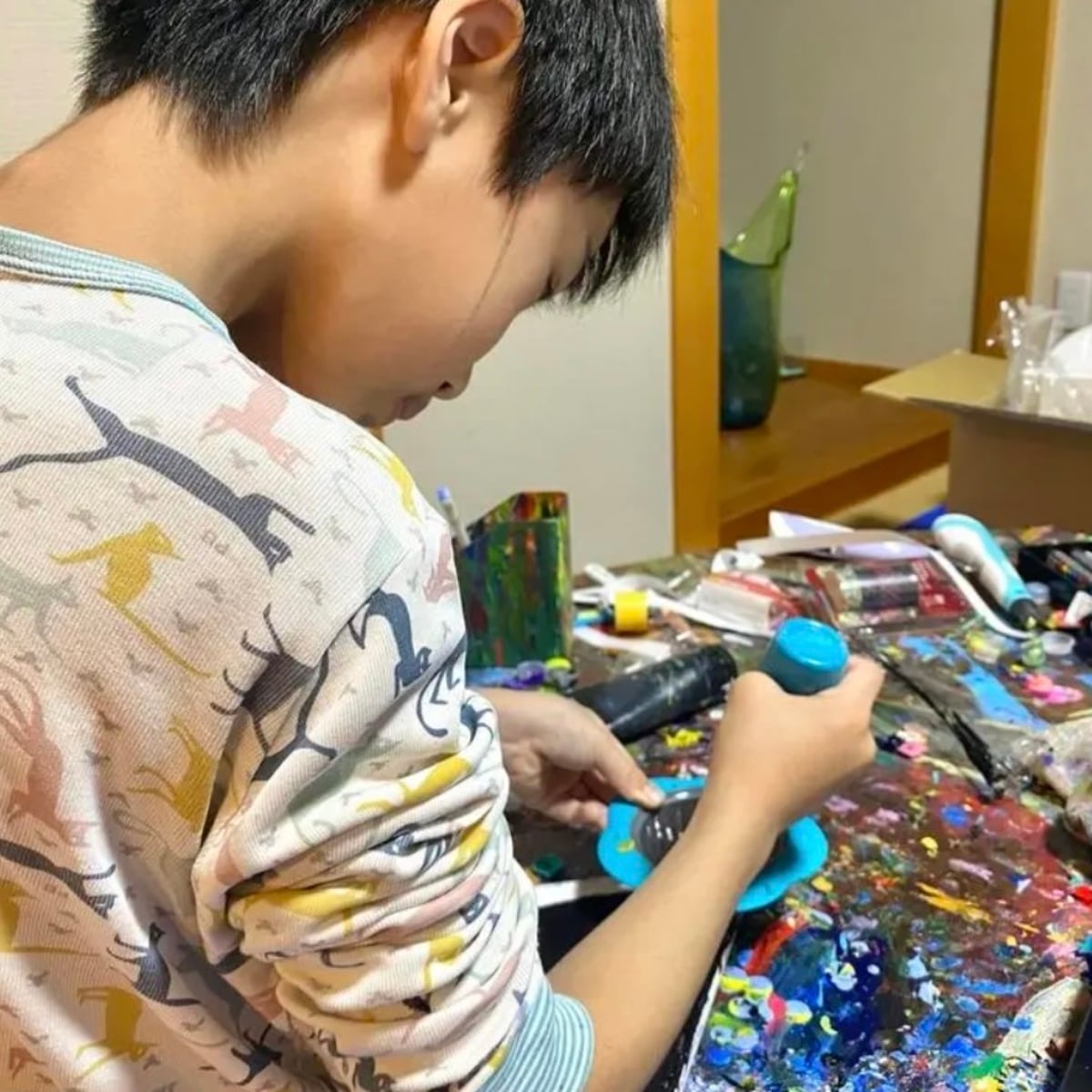 毎日のようにキャンバスに向かい、色と線で自分の世界を表現している。