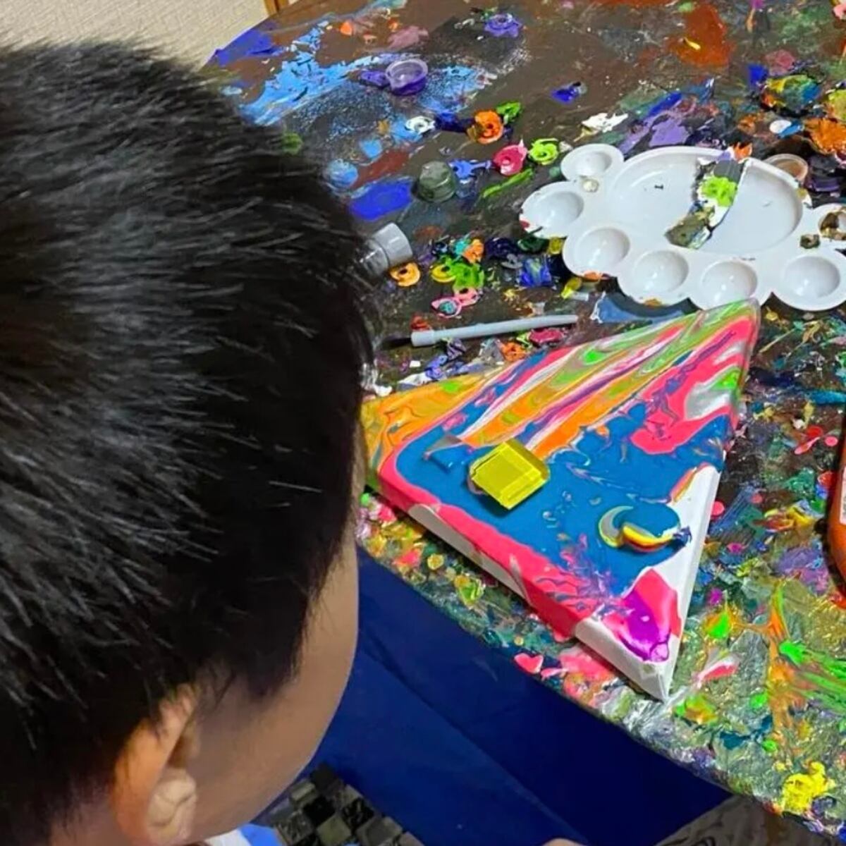 毎日のようにキャンバスに向かい、色と線で自分の世界を表現している。