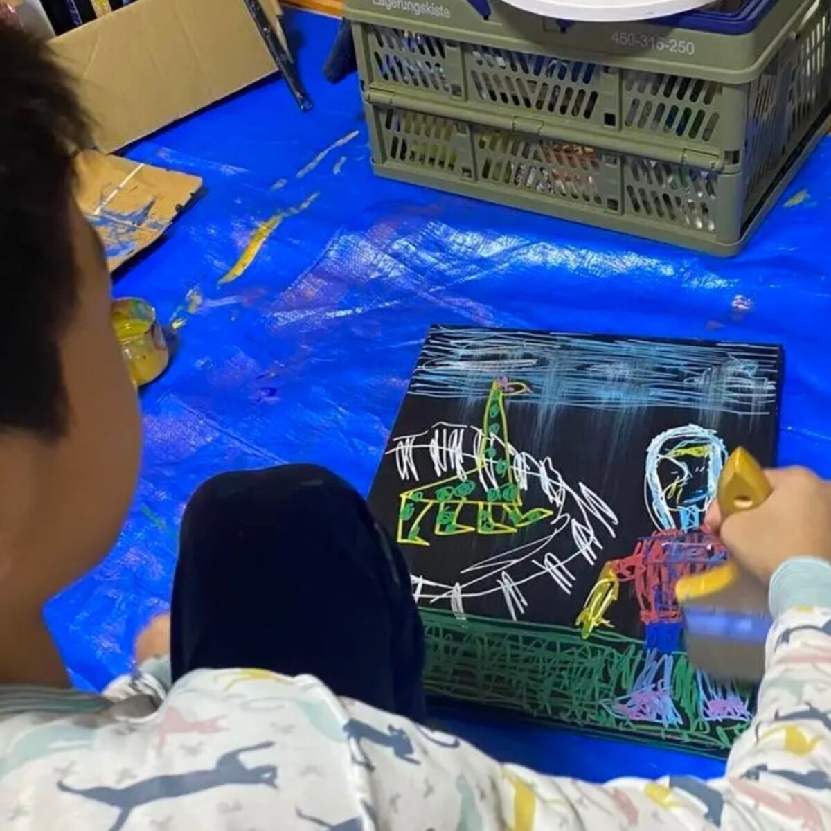 毎日のようにキャンバスに向かい、色と線で自分の世界を表現している。