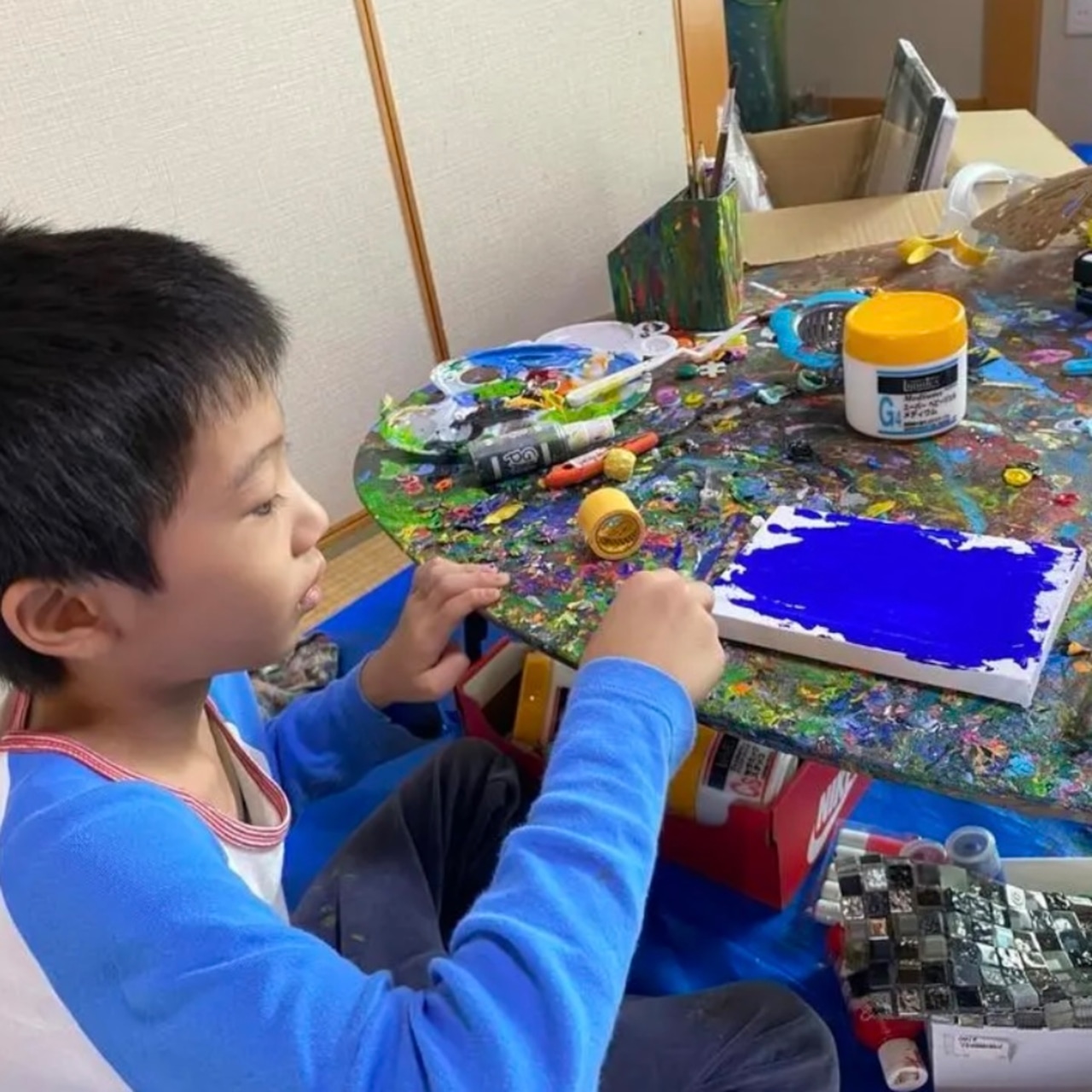 毎日のようにキャンバスに向かい、色と線で自分の世界を表現している。