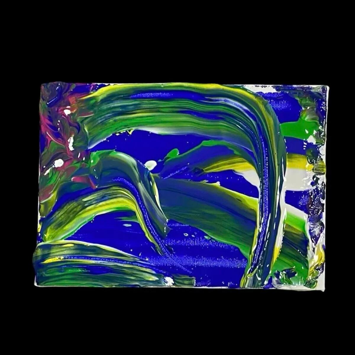 筆の動きがつながり合うように広がり、青と緑が交差していくその景色は、何かと何かを結びつける“心の橋”のようにも見えます。
