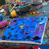 毎日のようにキャンバスに向かい、色と線で自分の世界を表現している。