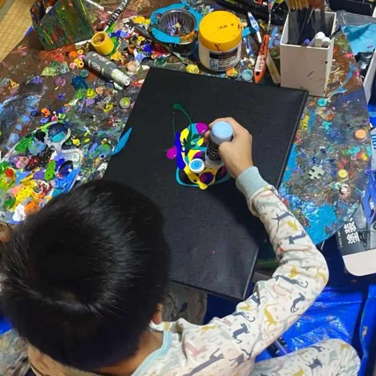毎日のようにキャンバスに向かい、色と線で自分の世界を表現している。