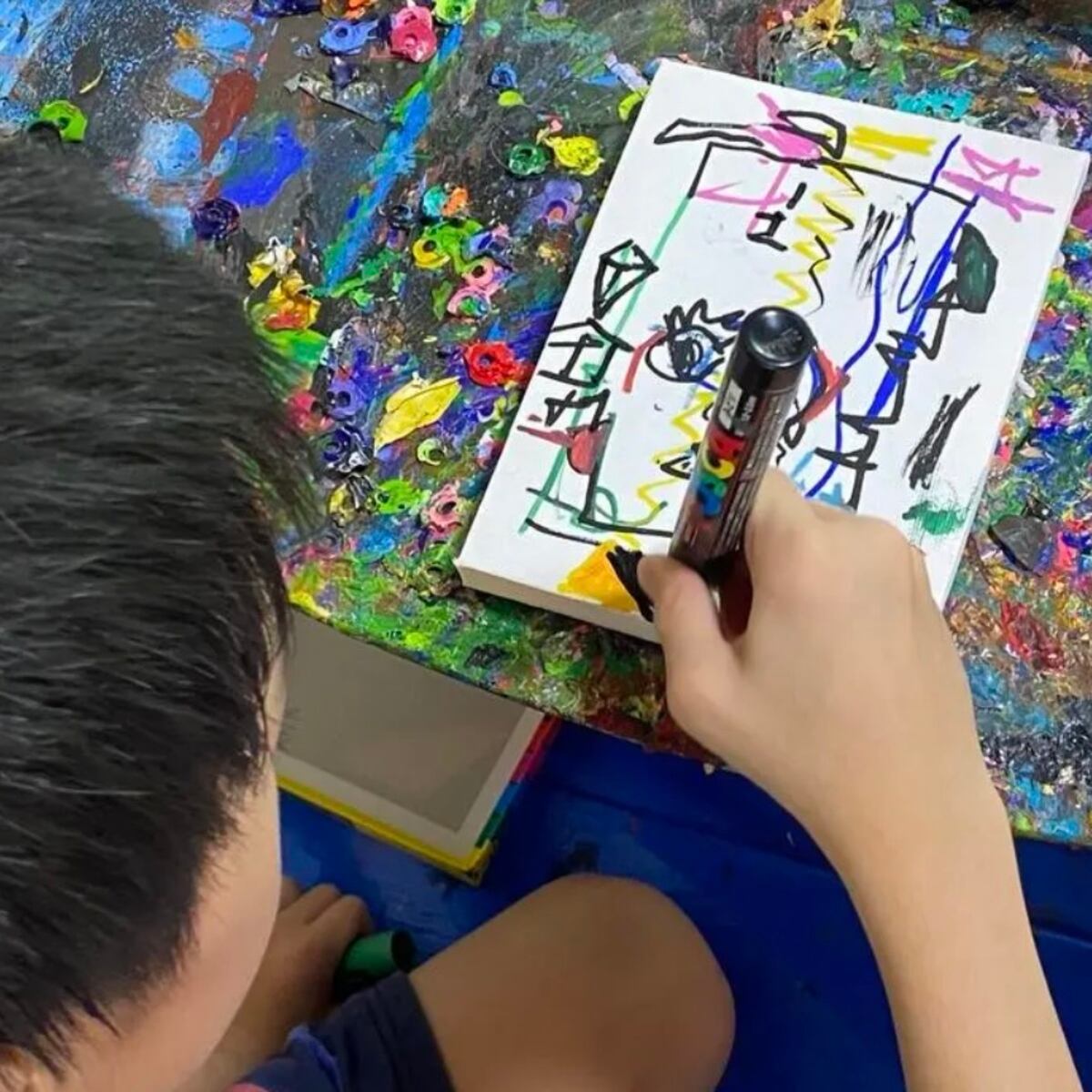 毎日のようにキャンバスに向かい、色と線で自分の世界を表現している。