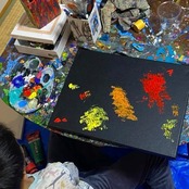 黒い宇宙のようなキャンバスに、カラフルな色が次々と生まれていく。