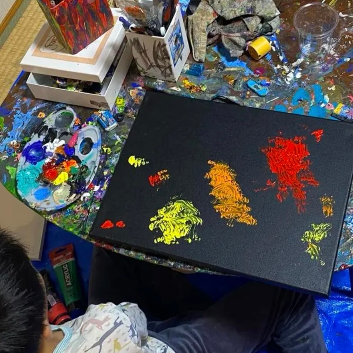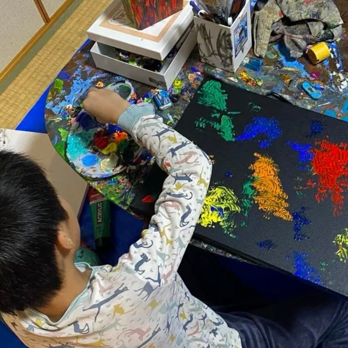毎日のようにキャンバスに向かい、色と線で自分の世界を表現している。