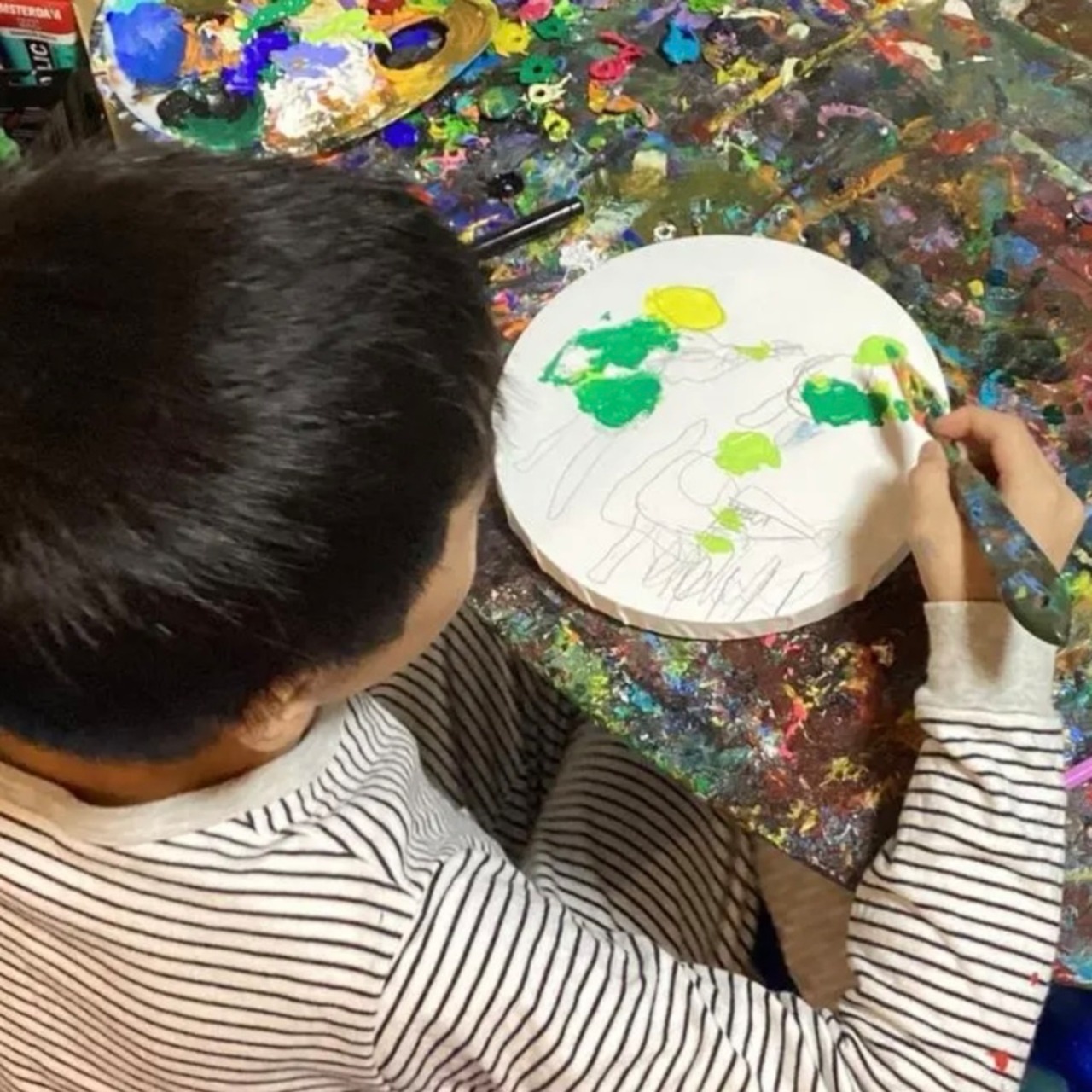 毎日のようにキャンバスに向かい、色と線で自分の世界を表現している。