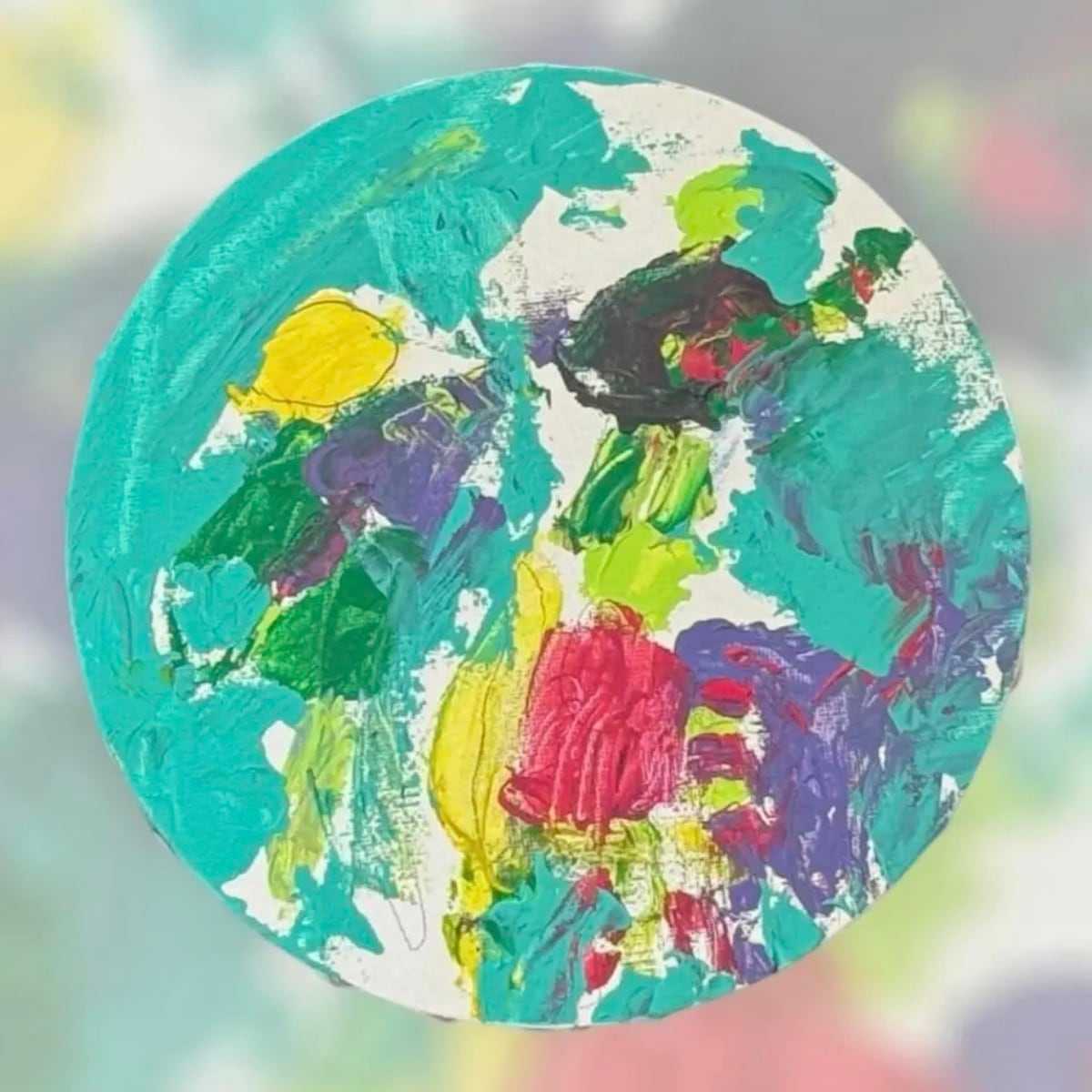 筆の動きも、色の重なりも、まるでメロディのように軽やかだ。