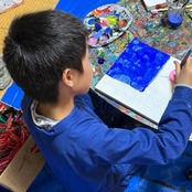 毎日のようにキャンバスに向かい、色と線で自分の世界を表現している。